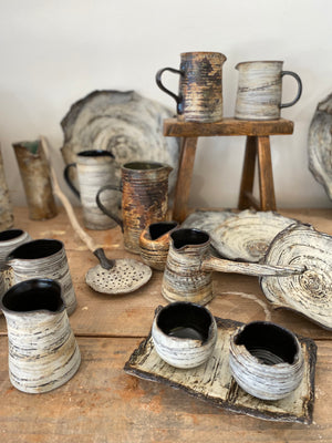 Subtle textures, carefully scarred cups, plates, bowls and vases all stem from a relentless passion for ceramics.